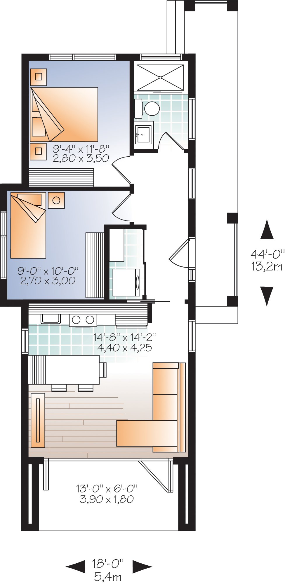 La hauteur de plafonds prévue à chaque étage, et précisée sur la fiche du plan, est incluse dans les prix. Ainsi si un/des planchers prévoient un plafond cathédral ou à plus de 8' ou en pente, les coûts s'y rattachant sont inclus.