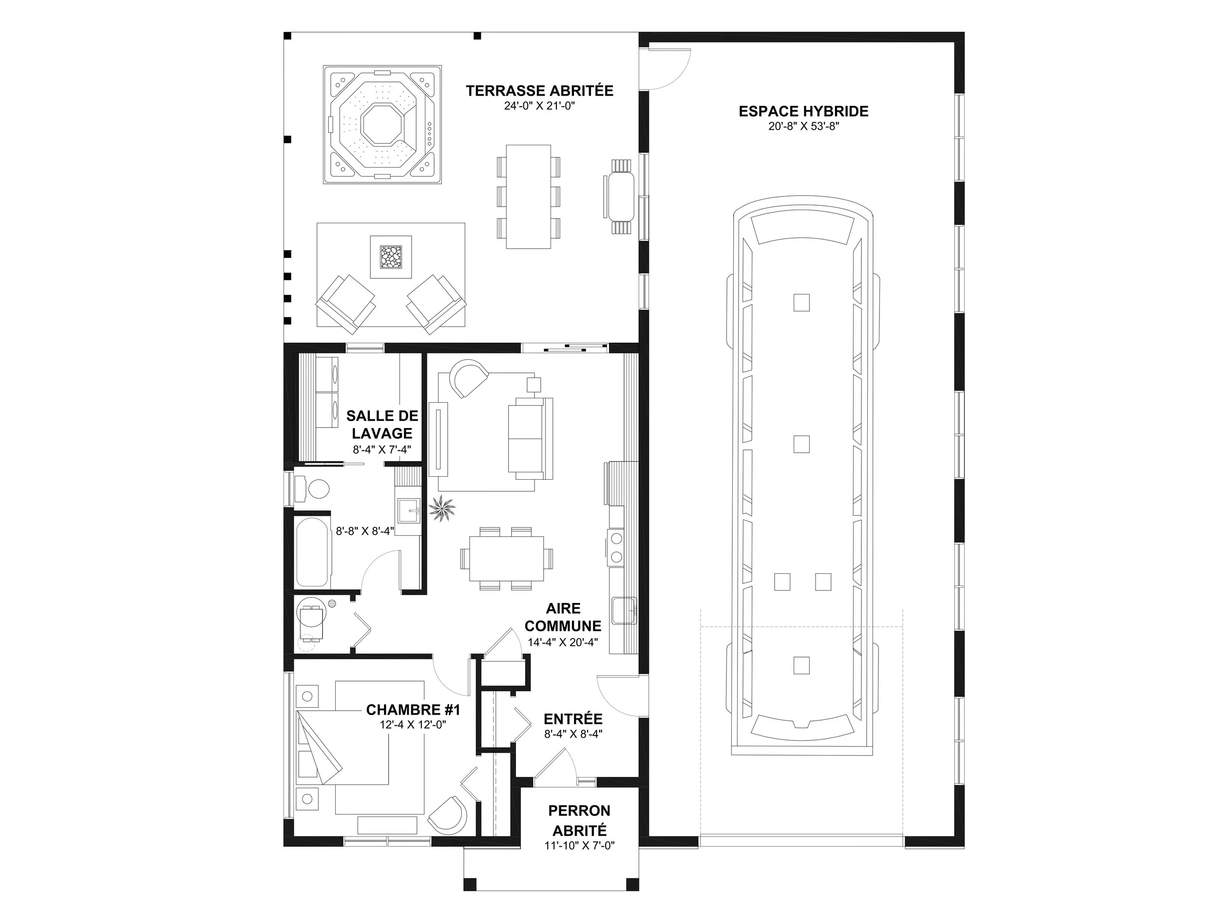 Les balcons et terrasses qui sont illustrés sur nos plans ET abrités, sont inclus dans nos prix. Cependant, les patios non abrités ainsi que les cuisines extérieures ne sont pas inclus aux prix.